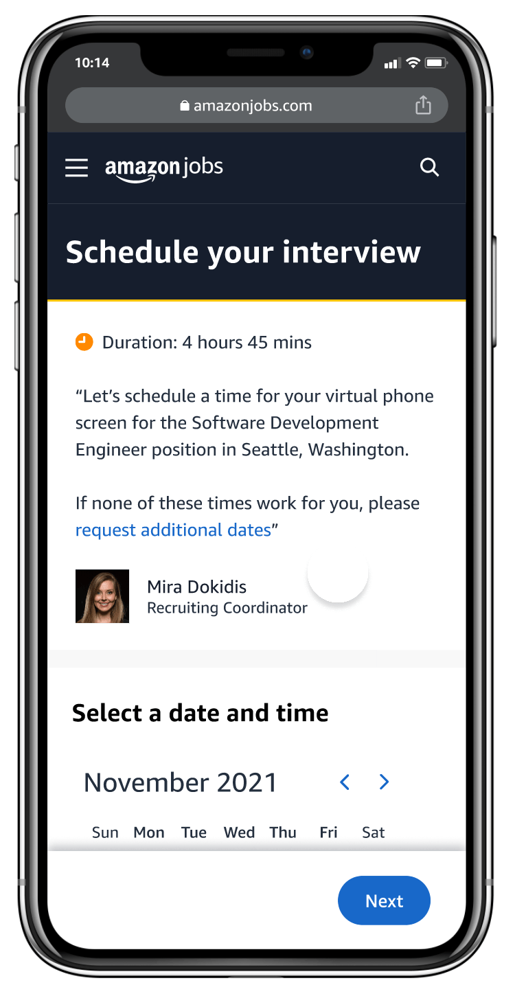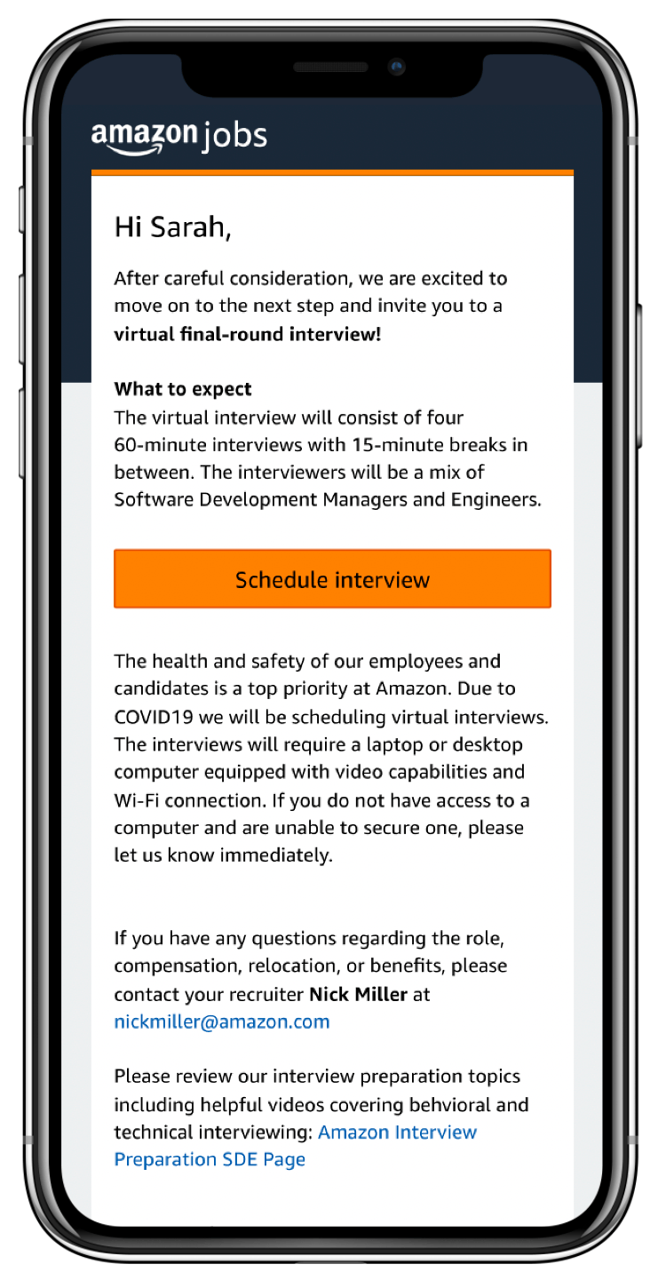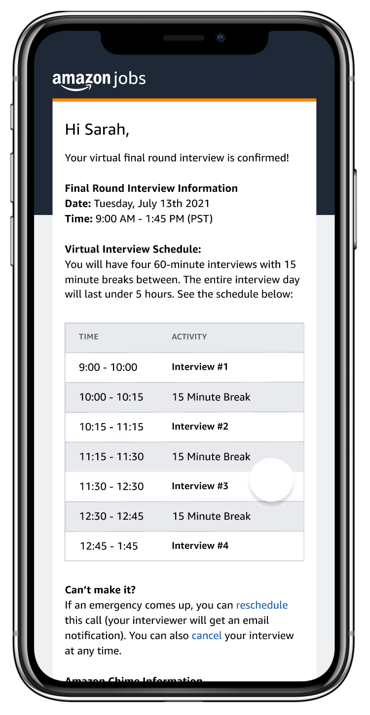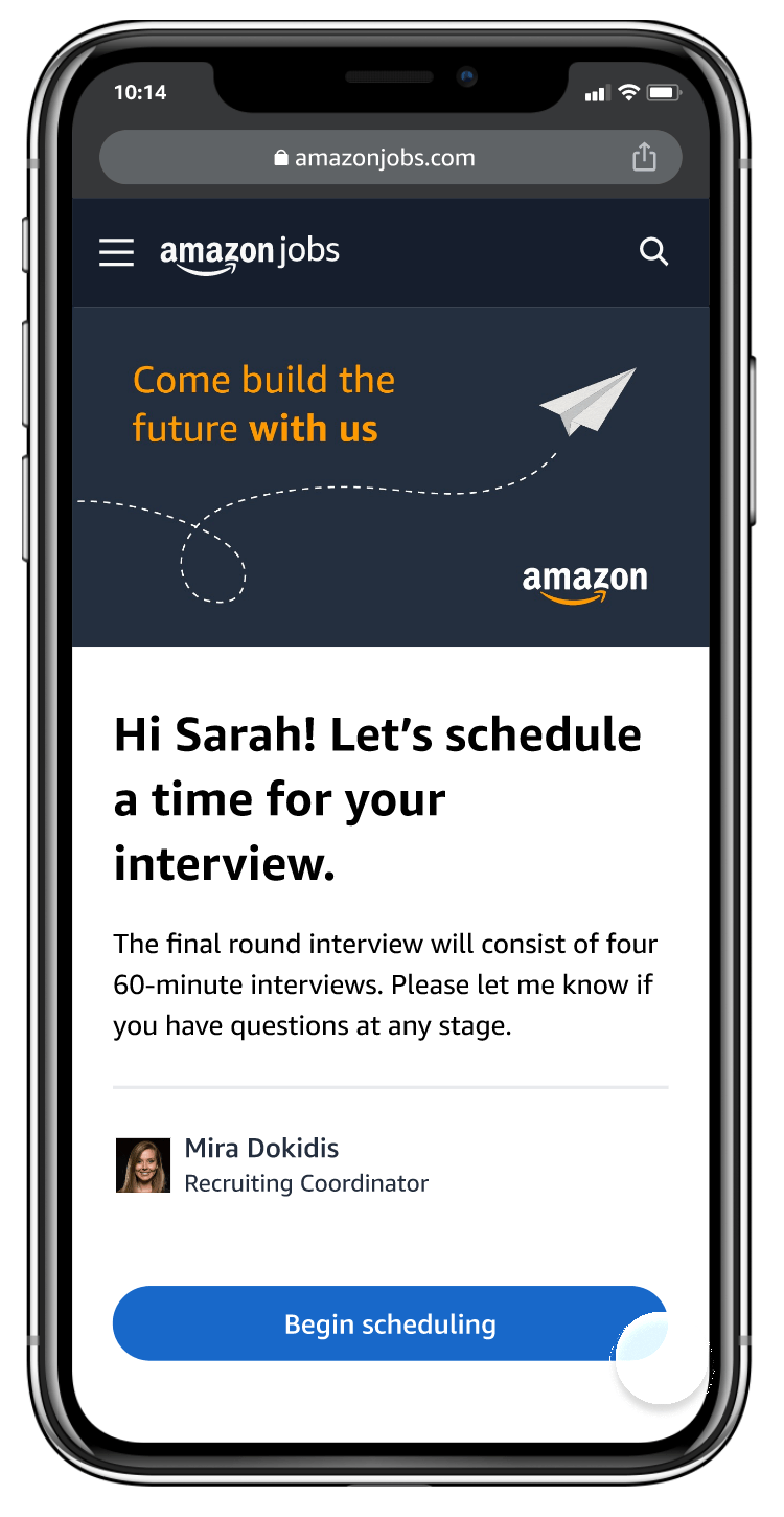 Candidates can access the scheduling tool from an automated email asking them to select an interview time
